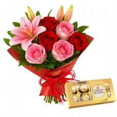 Combo Buquê 6 Rosas Vermelhas + Ferrero Rocher